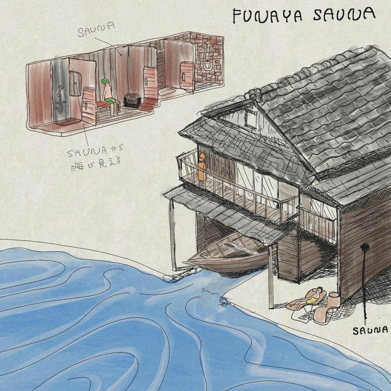 魚ち様にFUNAYA SAUNAのイラストを描いていただきました。イラストに負けないような素敵なサウナを作ります。